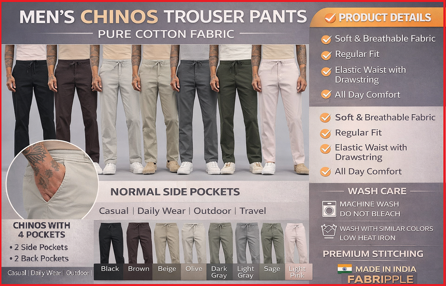 Sindhnur, Karnataka, 584128It is so comfortable and soft fabric that I complete my two days travelling in this cargo... Go for it... Such a worthy product